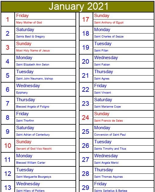 The 2021 catholic planner will have you organizing your life for maximum efficiency, productivity, and purpose in no time flat. What do the church colors mean? Kateri tekakwitha, the 1st native american proposed for canonization & patron of the environment, orphans, native americans, & exiles. Published for the fashion industry by the pantone color institute, pantone's trend forecasting and color consultancy, this season's report features the top 10 standout colors, as well as current takes on the five core classics we can expect to see on the new york runway as fashion designers introduc. A visually hot color, red represents passionate, sexual love. This is a catholic ordo (liturgical calendar) for the 2020 liturgical year for the holy sacrifice of the mass in the extraordinary form according to if a mass is shown in a shade of this color, it means that propers for that mass are available on or through this site. Do you struggle to live the timeless rhythms and of the catholic liturgical year with while organizing your modern daily duties and schedule? In the roman rite of the catholic church, the anglican church, the presbyterian church, the methodist church, and the purple is usually the primary color associated with advent because it has historically been the color of royalty and has also been know to reflect penitence and fasting. Colors of faith is designed to allow people to celebrate with the colors of the liturgical seasons. 2021 january, february, march, april, may, june, july, august, september, october, november, december. These are the colors of the liturgical year. Where the saint, rank, and color of the day are listed, together with. (ordinary time is the rest of the year that's not the christmas or easter season — it's still important, it just has an unexciting name.)